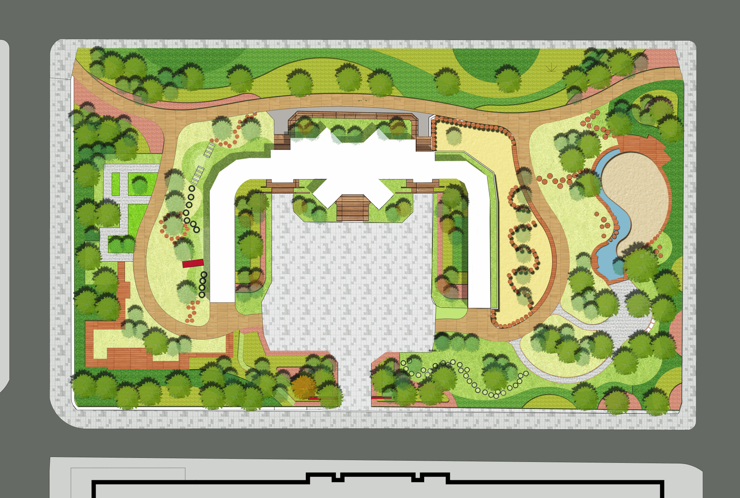 設計理念:以“釋放天性、回歸本真、淬礪教育。健康身心”為設計理念,打造風格簡潔、自然質樸的,能夠滿足兒童親近自然解放天性的活動場地。由于是改造提升項目,因此會最大化的保留現有高大喬木、廣場鋪裝及亭廊構筑物。重新整理后,梳理出一個合理的空間層次感。