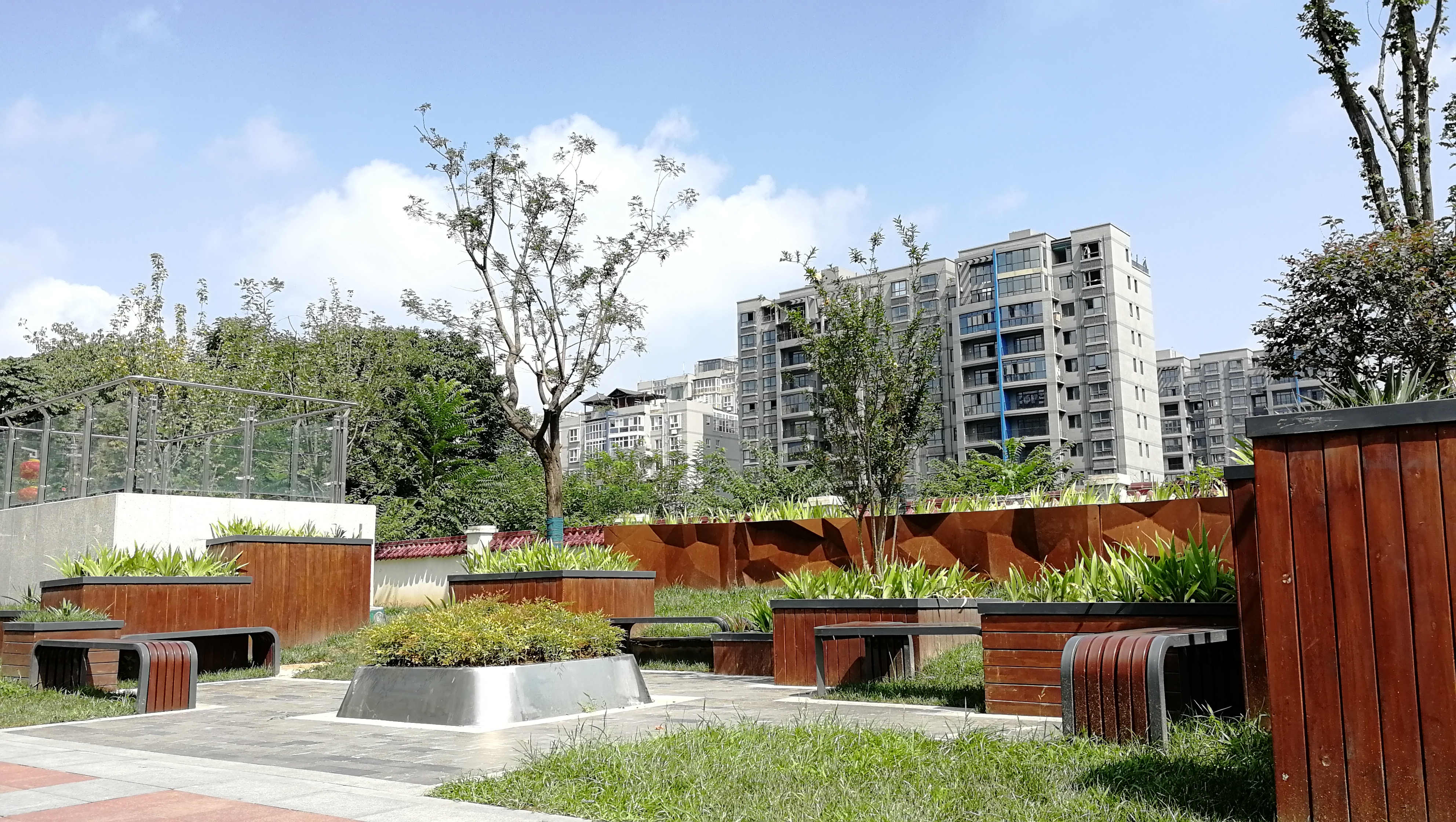 科技路綠化改造提升工程一標(biāo)段, 工程地點(diǎn)位于西安市高新區(qū)科技路(丈八八路至高新三路),總長度2.2千米。施工內(nèi)容包括人行道兩側(cè)、側(cè)分帶中分帶喬木、造型樹栽植、草坪鋪設(shè),中分帶異形玻璃鋼花缽、特色不銹鋼花池以及十三個街角景觀節(jié)點(diǎn)。本工程以打造西安最美道路為目標(biāo),優(yōu)化苗木栽植過程,景觀施工精細(xì)化管理。施工過程中根據(jù)業(yè)主要求,結(jié)合現(xiàn)場實(shí)際環(huán)境協(xié)同設(shè)計(jì)方對十三個街角景觀節(jié)點(diǎn)進(jìn)行了深入優(yōu)化。節(jié)點(diǎn)內(nèi)容增加了休閑景觀廊架、不銹鋼雕塑、異形特色坐凳,不銹鋼樹池、防腐木花箱,互動景墻、彩繪景石等內(nèi)容,每個節(jié)點(diǎn)保持各自特色,現(xiàn)代科技感與園林景觀完美融合。2020年12月評選榮獲 “陜西省園林綠化優(yōu)質(zhì)工程”獎。